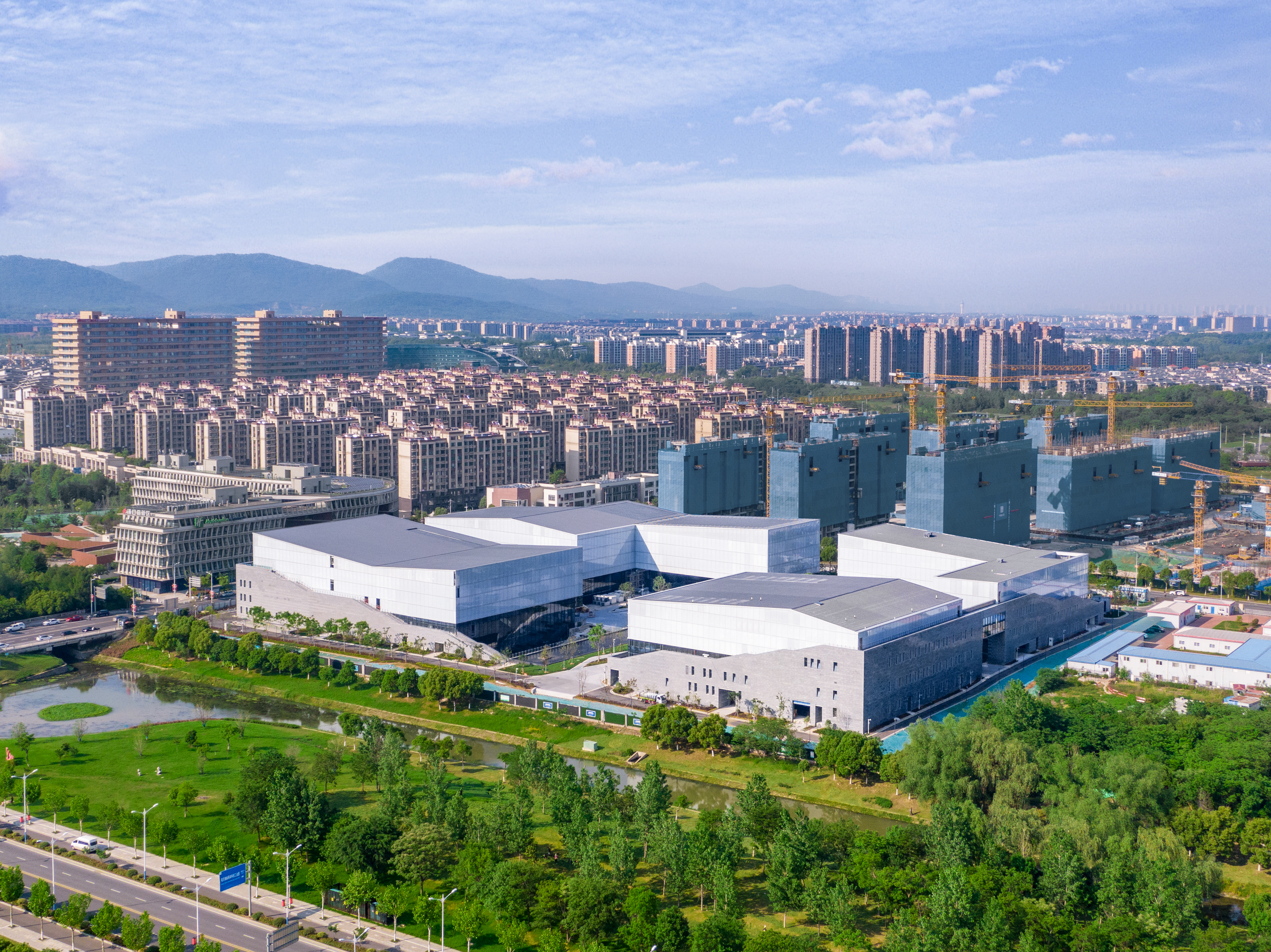 浦口高新区文体中心位于园区卓溪路与山林路交叉口南侧,规划总建筑面积约7万㎡,其中文化中心约3万㎡,体育中心约4万㎡,建成4栋单体,1处人防地库,打造比赛、健身、文化交流、演艺活动等功能为一体的综合性公共场所。