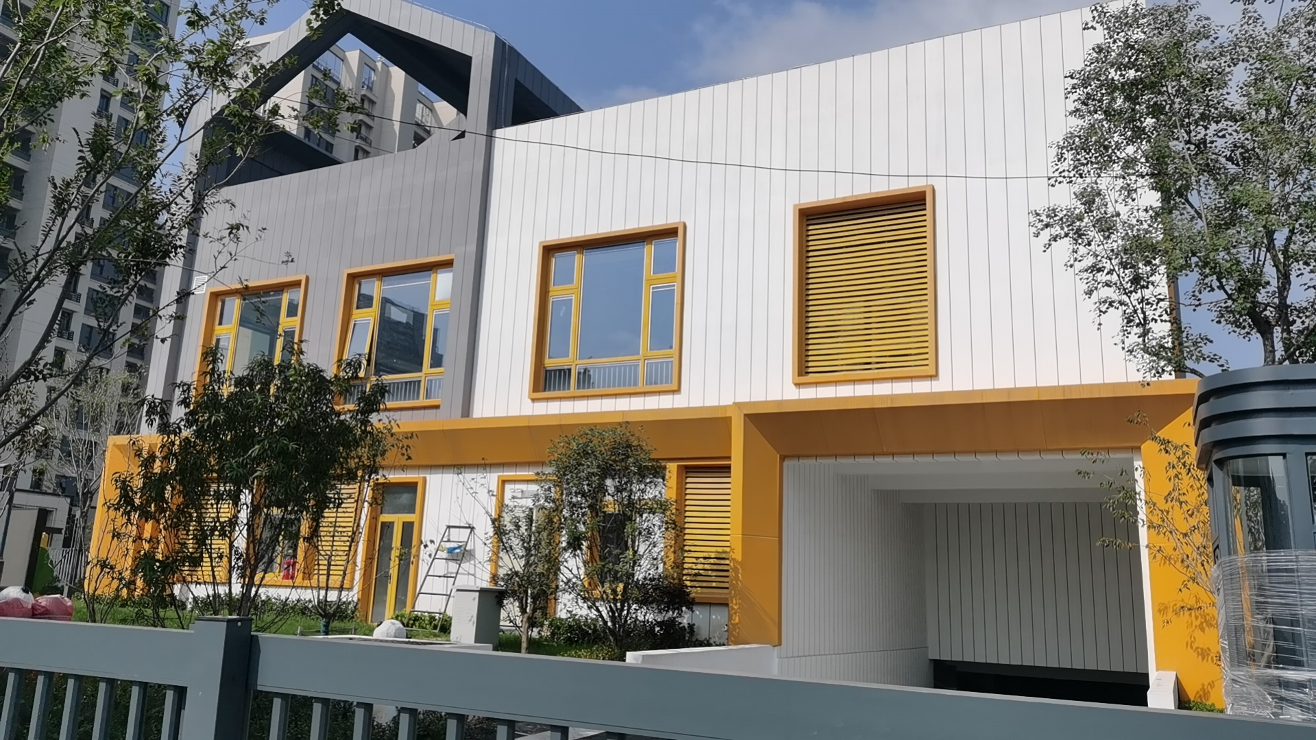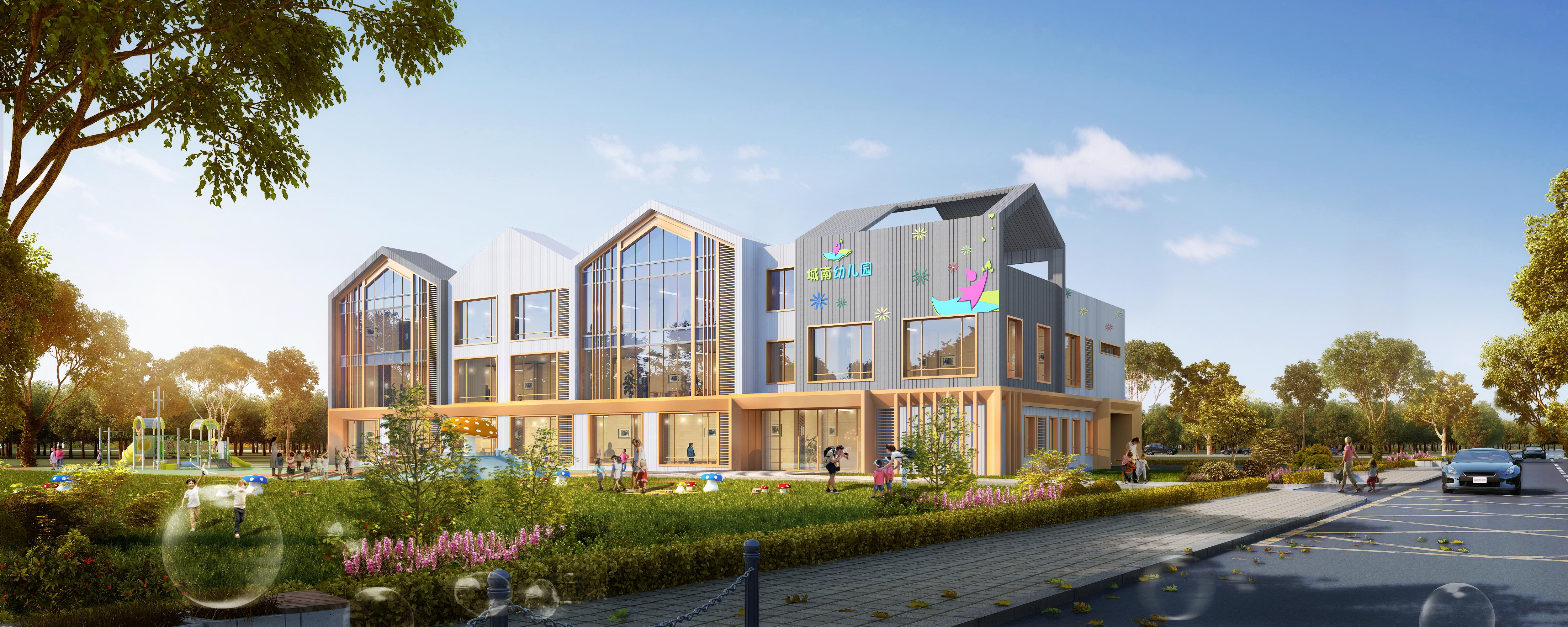 2022年11月,项目开工建设,总建筑面积约5068m²,设置3轨9班幼儿园。地块内规划多层公共建筑1栋,地上3层,地下1层。建筑立面采用现代风格,融入“积木城堡”的设计理念,并结合屋顶平台,打造优美的第五立面。立面材质以白色和灰色的高科技复合软瓷涂料为主,搭配橙黄色的金属格栅和干挂铝板,通过南侧大面积通透玻璃,实现充满阳光的幼儿生活场景。