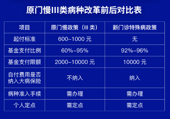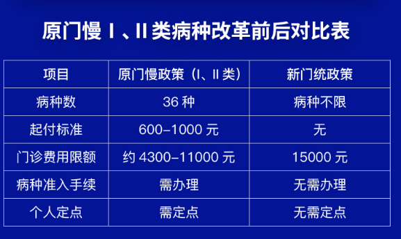 ①原门慢Ⅰ、Ⅱ类病种并入新门诊统筹;②原门慢Ⅲ类病种(含肺结核)并入门诊特殊病种。