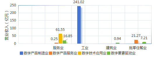 1. 主要指标情况良好。从营业收入看,2023年,浦口区3486家企业累计实现营业收入349.1亿元。其中,企业数量最多的服务业企业实现营业收入78.66亿元,主要集中在数字技术应用业;工业企业实现营业收入242.02亿元,均为数字产品制造业;建筑业实现营业收入0.94亿元,均为数字要素驱动业;批零住餐业实现营业收入28.5亿元,主要集中在数字产品服务业。工业和服务业营业收入占全区数字经济核心产业营业收入的91.6%,两大行业有力支撑了浦口区数字经济核心产业平稳发展。