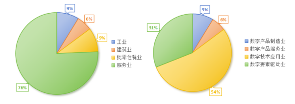 根据《数字经济及其核心产业统计分类(2021)》,数字经济核心产业涵盖126个国民经济行业小类,其中工业、建筑业、批发零售业、服务业涵盖的行业小类占比分别为42.9%、3.2%、6.3%、47.6%,由此可见数字服务业在数字经济核心产业中占据着非常重要的地位。2023年,浦口区数字经济核心产业中应用软件开发、信息技术咨询服务产业规模较大、贡献显著,但互联网科技创新平台、互联网数据服务等新型信息技术服务产业规模还有很大发展空间。2023年全年,我区互联网科技创新平台、互联网数据服务实现增加值-232万元,一定程度上拉低了全区数字经济总规模。