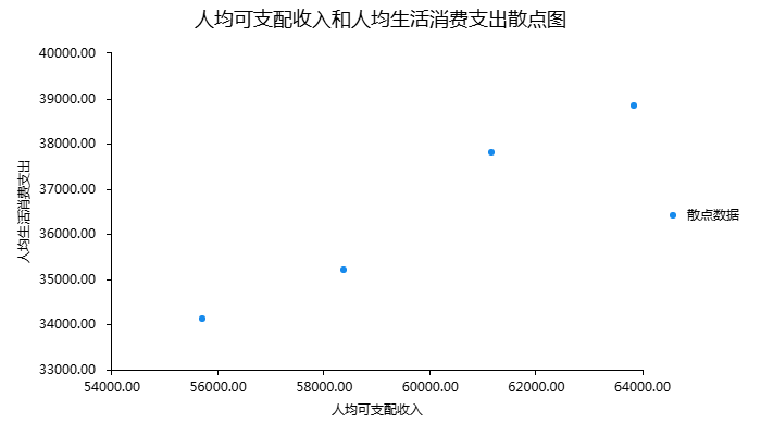 研究浦口区人均可支配收入与人均生活消费支出之间的关系,通过SPSSAU作人均可支配收入和人均生活消费支出的散点图,浦口区人均可支配收入与人均生活消费支出呈线性增长。