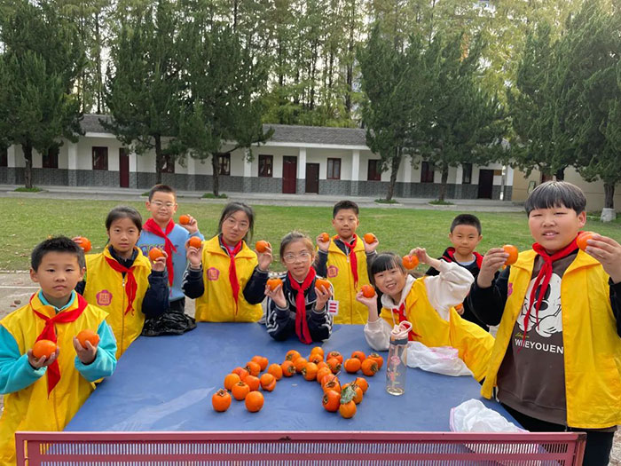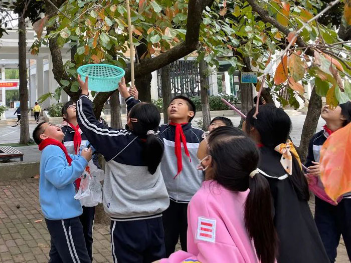 采摘活动结束后,大队部组织同学们把柿子分发到各个班级,全校师生共同品味胜利的果实。采摘节活动的开展,是学校有效利用现有物质资源,创新德育实践课程、劳动课程的载体,不仅丰富了学生的校园生活,也让学生在劳动中得到锻炼,体验收获的喜悦与分享的幸福。