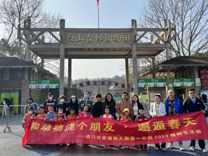 浦口区实验幼儿园第一分园来到红山动物园开展“和动物‘浇’个朋友·邂逅春天”植树节活动。孩子们在老师和家长的引导下,认识植物与动物之间的亲密关系,亲手种下一根根幼竹,把对大自然的爱浇灌在春天里。