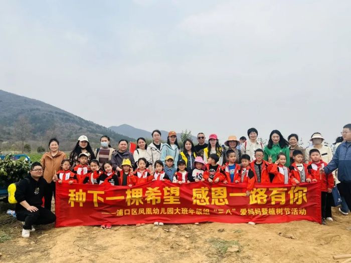 浦口区凤凰幼儿园新时代文明实践服务队组织大班幼儿前往老山红色文化教育基地开展“种下一颗希望 感恩一路有你”亲子植绿活动,激发孩子们爱绿、护绿、亲绿的情感。