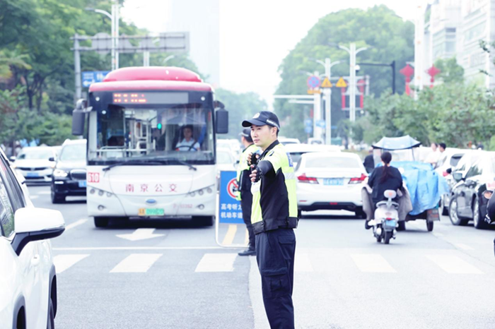 交警大队民警在考场周边道路护考执勤,加强交通疏导,增设临时交通标志,严查交通违法行为,营造安静的考试环境。