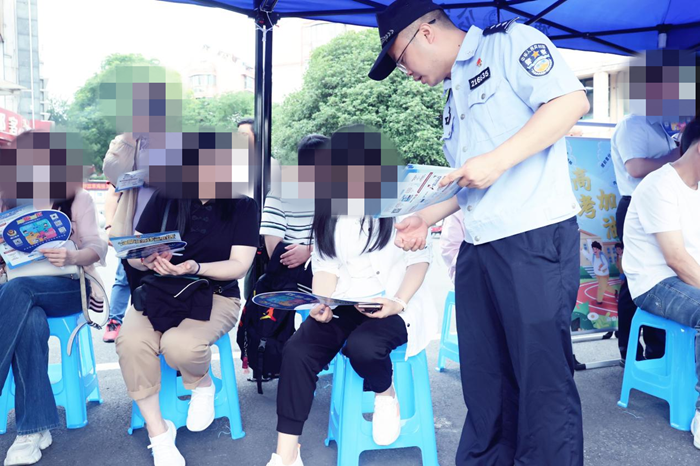 设置临时候考区,因地制宜开展反诈宣传,制作宣传展板,民警现场讲解“提前查分”“指导填报志愿”“伪造录取通知书”等诈骗手法及防范要点。