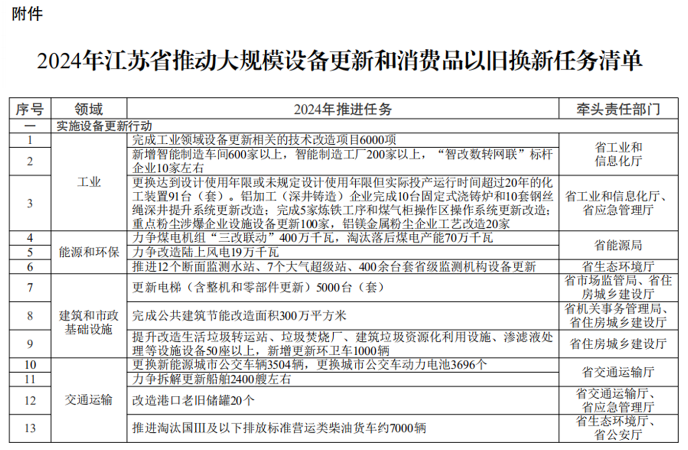 附件:2024年江苏省推动大规模设备更新和消费品以旧换新任务清单